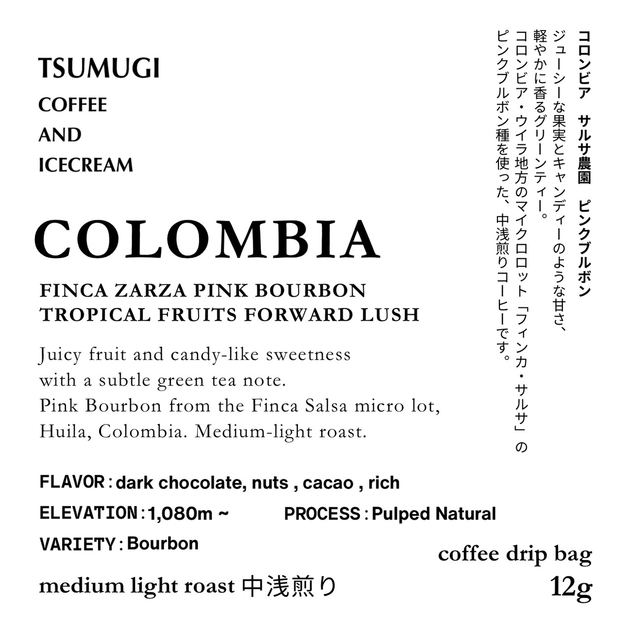 コロンビア・ウイラ地方のマイクロロット「フィンカ・サルサ」のピンクブルボン種を使った、中浅煎りコーヒーです。